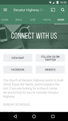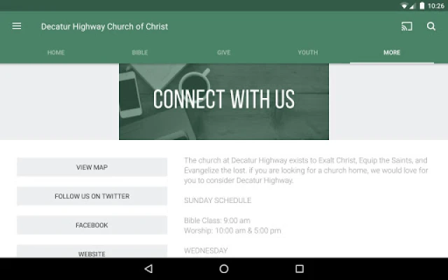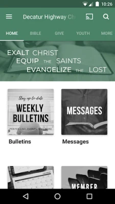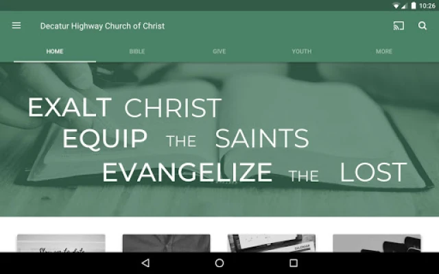 Η επίσημη εφαρμογή της εκκλησίας Decatur Highway Church of Christ στο Gardendale, Αλαμπάμα. Συνδεθείτε και εξερευνήστε τον σκοπό μας: να Υψώσουμε τον Χριστό, να Εξοπλίσουμε τους Αγίους και να Ευαγγελίσουμε τους χαμένους. Μάθετε περισσότερα για τον Θεό, τον Υιό Του και το σχέδιό Του για εσάς.