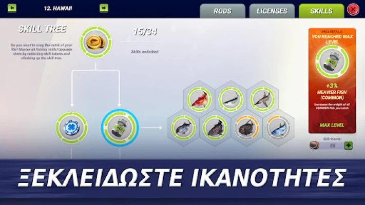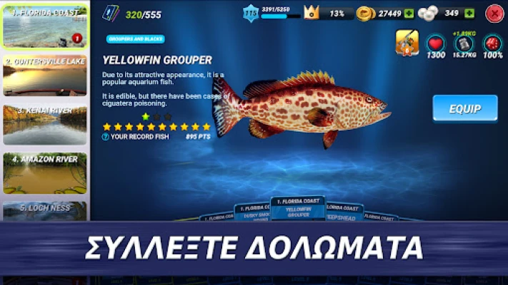 Επιλέξτε με σύνεση τον εξοπλισμό σας, αναβαθμίζοντας δολώματα και καλάμια για να ενισχύσετε τις πιθανότητές σας για μια αξιομνημόνευτη ψαριά. Ξεκλειδώστε νέους τύπους ψαρέματος και ανακαλύψτε σπάνια είδη ψαριών σε εντυπωσιακές τοποθεσίες σε όλο τον κόσμο, από τις ζεστές λίμνες της Φλόριντα μέχρι τα παγωμένα νερά του Καναδά. Λάβετε μέρος σε εβδομαδιαίες εκδηλώσεις περιορισμένου χρόνου, ανεβείτε στους πίνακες κατάταξης των πρωταθλημάτων και κερδίστε αποκλειστικές ανταμοιβές που θα απογειώσουν την αλιευτική σας καριέρα.