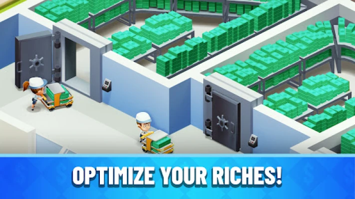 Για να φτάσεις στην κορυφή, το *Idle Bank Tycoon* σου προσφέρει όλα τα απαραίτητα εργαλεία: Διασφάλισε τα περιουσιακά σου στοιχεία στα θησαυροφυλάκια σου και αναβάθμισε συνεχώς τις εγκαταστάσεις σου για να επιταχύνεις τη ροή των εσόδων. Προσέλαβε και ανέδειξε έμπειρους διαχειριστές για να ενισχύσεις το προσωπικό σου και να περνάς με επιτυχία κάθε έλεγχο. Αύξησε τη φήμη σου για να προσελκύσεις την αφρόκρεμα των πελατών, ακόμα και δισεκατομμυριούχους, και επέλεξε τους πιο ικανούς φρουρούς για την αδιαπραγμάτευτη ασφάλεια των κεφαλαίων σου. Απόκτησε νέα υποκαταστήματα και επέκτεινε την επιρροή σου σε κάθε γωνιά του κόσμου, μετατρέποντας μια μικρή τράπεζα σε ένα παγκόσμιο μεγαθήριο.