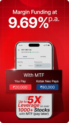 Εξερευνήστε ένα ολοκληρωμένο φάσμα επενδυτικών προϊόντων, όπως μετοχές, αμοιβαία κεφάλαια, εμπορεύματα, καθώς και συμβόλαια μελλοντικής εκπλήρωσης και δικαιώματα προαίρεσης (F&O). Το Kotak Neo ενσωματώνει προηγμένα εργαλεία όπως τα γραφήματα TradingView για στρατηγικές F&O, τη δυνατότητα Pay Later για μετοχές και την Ευκολία Συναλλαγών με Περιθώριο (MTF) που προσφέρει έως και 4 φορές μόχλευση με ανταγωνιστικά επιτόκια. Οι διάφορες επιλογές τιμολόγησης, συμπεριλαμβανομένου του προγράμματος "Trade Free Youth Plan" για νέους επενδυτές κάτω των 30, εξασφαλίζουν ότι υπάρχει ένα ιδανικό πλάνο για κάθε επενδυτικό προφίλ, προσφέροντας παράλληλα μηδενική προμήθεια για επενδύσεις σε μετοχές και ελκυστικές χρεώσεις για ενδοημερήσιες συναλλαγές.
