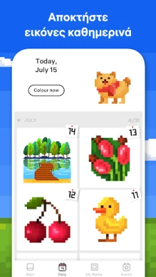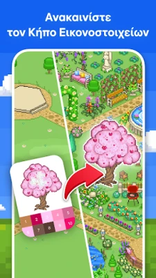 Εξερευνήστε μια πληθώρα θεμάτων, από ζωντανά μάνταλα και ανθισμένα λουλούδια μέχρι εποχιακές δημιουργίες, και βρείτε πάντα κάτι καινούργιο να χρωματίσετε, καθώς εμπλουτίζουμε τη συλλογή μας καθημερινά. Ξεκλειδώστε μια νέα διάσταση ψυχαγωγίας με την καινοτόμο λειτουργία "Ανθόκηπος", όπου χρωματίζετε μοναδικά αντικείμενα για να φτιάξετε τον δικό σας παραδεισένιο κήπο και να κερδίσετε ξεχωριστές ανταμοιβές. Επιπλέον, συμμετέχετε σε ειδικές εποχιακές εκδηλώσεις για να χρωματίσετε θεματικές εικόνες και να αποκτήσετε μοναδικά μπόνους, γιορτάζοντας μαζί μας κάθε σημαντική περίσταση.