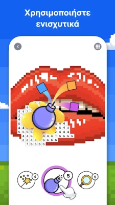 Ανακαλύψτε τη συναρπαστική εμπειρία του 3D χρωματισμού, προσθέτοντας βάθος και ζωντάνια στα έργα σας. Για τις πιο περίπλοκες εικόνες, χρησιμοποιήστε τους έξυπνους ενισχυτές, όπως το Color Splash για γρήγορο γέμισμα περιοχών ή το Magic Wand για να χρωματίσετε ολόκληρες σειρές κελιών με το ίδιο χρώμα, κάνοντας τη διαδικασία ακόμα πιο απολαυστική. Με το Pixel Art, έχετε τον πλήρη έλεγχο: επιλέγετε τι, πότε και πού θα χρωματίσετε, χωρίς χρονικούς περιορισμούς ή ανταγωνισμό. Είναι το προσωπικό σας καταφύγιο ηρεμίας, διαθέσιμο ανά πάσα στιγμή.