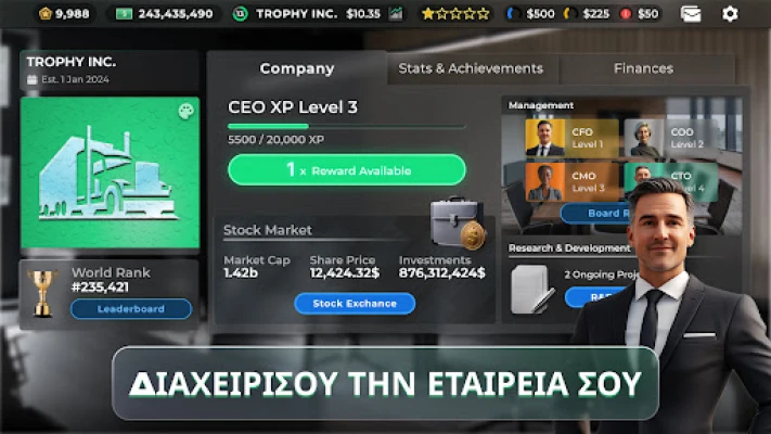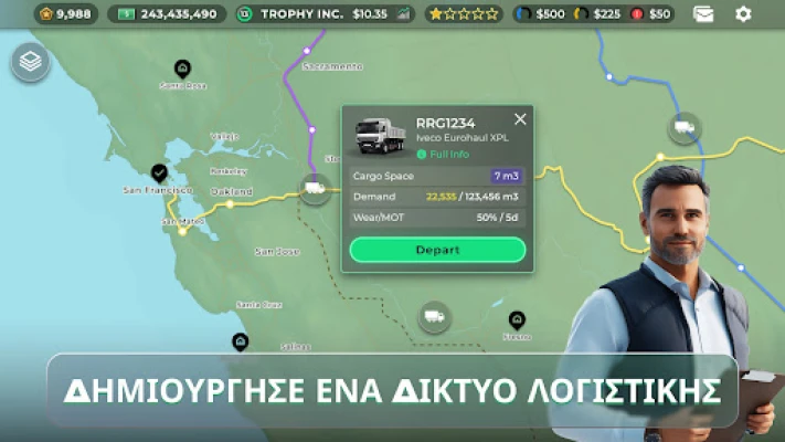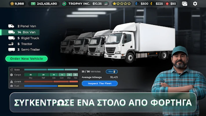 Γίνετε ο CEO στον συναρπαστικό κόσμο των μεταφορών. Χτίστε στρατηγικά την αυτοκρατορία φορτηγών σας, διαχειριζόμενοι στόλους, δρομολόγια και logistics, για να κυριαρχήσετε στην αγορά.