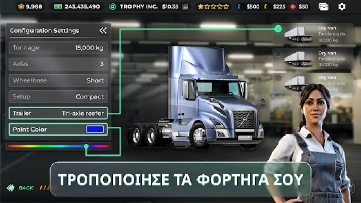 Φανταστείτε τον εαυτό σας στο τιμόνι μιας ακμάζουσας αυτοκρατορίας logistics, σχεδιάζοντας κάθε κίνηση, διαχειριζόμενος έναν τεράστιο στόλο και κατακτώντας τους δρόμους σε όλο τον κόσμο. Το Truck Manager Tycoon προσφέρει μια μοναδική εμπειρία προσομοίωσης, όπου η στρατηγική σας οξυδέρκεια δοκιμάζεται. Ξεκινήστε από ένα μικρό στόλο και οραματιστείτε την επέκταση σε μια παγκόσμια δύναμη στις μεταφορές, διαμορφώνοντας το δικό σας επιχειρηματικό ταξίδι. Εδώ, κάθε απόφαση μετράει, από την επιλογή του κατάλληλου οχήματος μέχρι τον βέλτιστο σχεδιασμό διαδρομής, προσφέροντας ένα βάθος που θα συναρπάσει τους λάτρεις των επιχειρηματικών προκλήσεων.