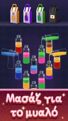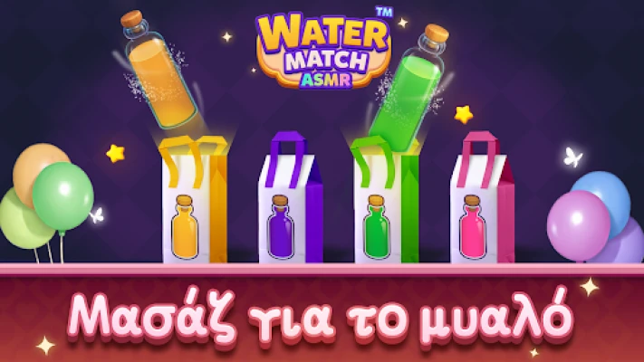 Ανακαλύψτε το Water Match™- ASMR Water Sort! Γυμνάστε το μυαλό σας με συναρπαστικούς γρίφους ταξινόμησης νερού. Ζήστε βαθιά χαλάρωση, διώξτε το άγχος και απολαύστε ηρεμιστικούς ήχους ASMR. Ένα διασκεδαστικό και έξυπνο παιχνίδι για όλες τις ηλικίες, που ενισχύει τη λογική και την παρατηρητικότητα.