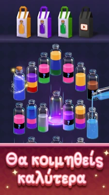 Αυτό που κάνει το Water Match πραγματικά ξεχωριστό είναι η ατελείωτη ροή ψυχαγωγίας. Με άπειρα επίπεδα ταξινόμησης και έξυπνες μηχανικές, όπως κρυφά χρώματα και σφραγισμένα μπουκάλια, η εμπειρία παραμένει πάντα φρέσκια και συναρπαστική. Ξεκινώντας με εύκολες προκλήσεις, θα οδηγηθείτε ομαλά σε πιο περίπλοκα σενάρια που απαιτούν στρατηγική σκέψη. Οπτικά, το παιχνίδι είναι μια πανδαισία χρωμάτων με 8 ζωηρούς τόνους νερού και κομψά κινούμενα σχέδια που μετατρέπουν κάθε κίνηση σε οπτική απόλαυση. Συνδυάζεται αρμονικά με κρυστάλλινους ήχους γυαλιού, απαλή ροή νερού και ευχάριστη μουσική, δημιουργώντας μια ολοκληρωμένη ακουστική εμπειρία που ηρεμεί την ψυχή. Και το καλύτερο; Μπορείτε να βυθιστείτε στον πολύχρωμο κόσμο του Water Match οποτεδήποτε και οπουδήποτε, καθώς δεν απαιτεί σύνδεση στο διαδίκτυο.