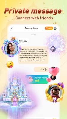 Απολαύστε μια μοναδική εμπειρία από την πρώτη στιγμή, χάρη στα εκθαμβωτικά εφέ εισόδου που κάνουν την παρουσία σας αισθητή και σας τοποθετούν στο επίκεντρο της προσοχής. Πέρα από τις ομαδικές συνομιλίες, το YOOY προσφέρει και τη δυνατότητα για ιδιωτικές συζητήσεις, όπου μπορείτε να ανταλλάξετε μηνύματα και φωτογραφίες με φίλους από όλη τη Μέση Ανατολή και πέρα. Βρείτε τα αγαπημένα σας ηχητικά δωμάτια και μοιραστείτε τα εύκολα με άλλους, ενισχύοντας την κοινότητα και τις αλληλεπιδράσεις. Με το YOOY, κάθε σύνδεση γίνεται απροσδόκητα όμορφη.